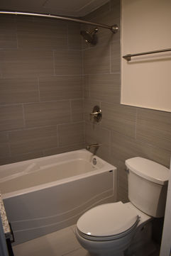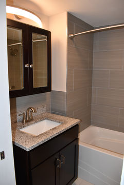 1-bedroom apartment featuring new luxury LVP flooring, stylish urban window treatments, chic ceiling fixtures and chandeliers, laundry closet featuring a brand new washer/dryer unit, and crown molding detail in each room. The kitchen features a pantry, stainless steel appliances, glass top electric range, over the range microwave, granite counter tops, extra deep stainless steel sinks, as well as urban kitchen cabinetry & accents. The bathroom features ceramic tile flooring & walls, extra deep soaking tub with shower, urban style vanity with granite counter top, tri-view medicine cabinet, and high-end American Standard fixtures.