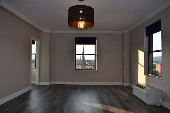 Large 1-bedroom apartment featuring ample closet space, new luxury LVP flooring, stylish urban window treatments, chic ceiling fixtures and chandeliers, laundry closet featuring a brand new washer/dryer unit, and crown molding detail in each room. The kitchen features a pantry, stainless steel appliances, glass top electric range, over the range microwave, granite counter tops, extra deep stainless steel sinks, as well as urban kitchen cabinetry & accents. The bathroom features ceramic tile flooring & walls, extra deep soaking tub with shower, urban style vanity with granite counter top, tri-view medicine cabinet, and high-end American Standard fixtures.